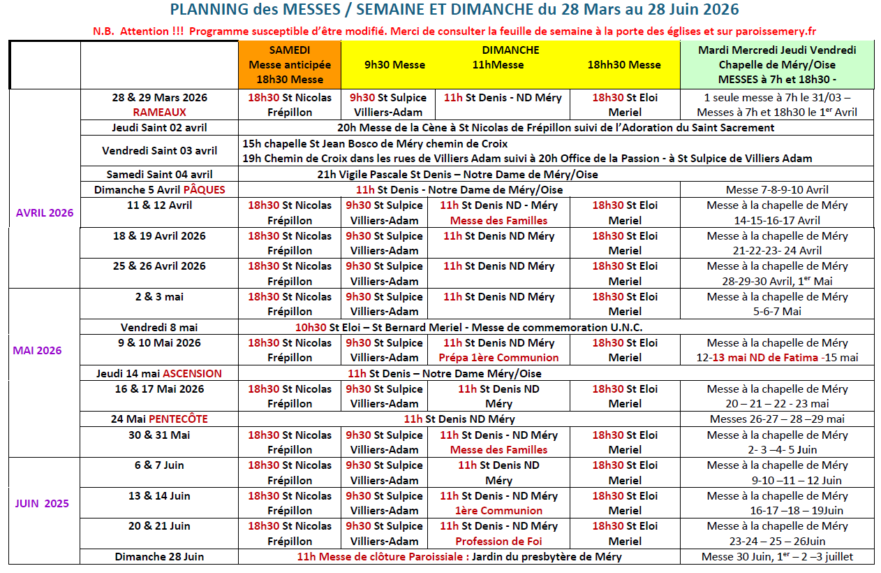 Ensemble paroissial catholique de Méry Sur Oise, Mériel, Frépillon, Villiers-Adam