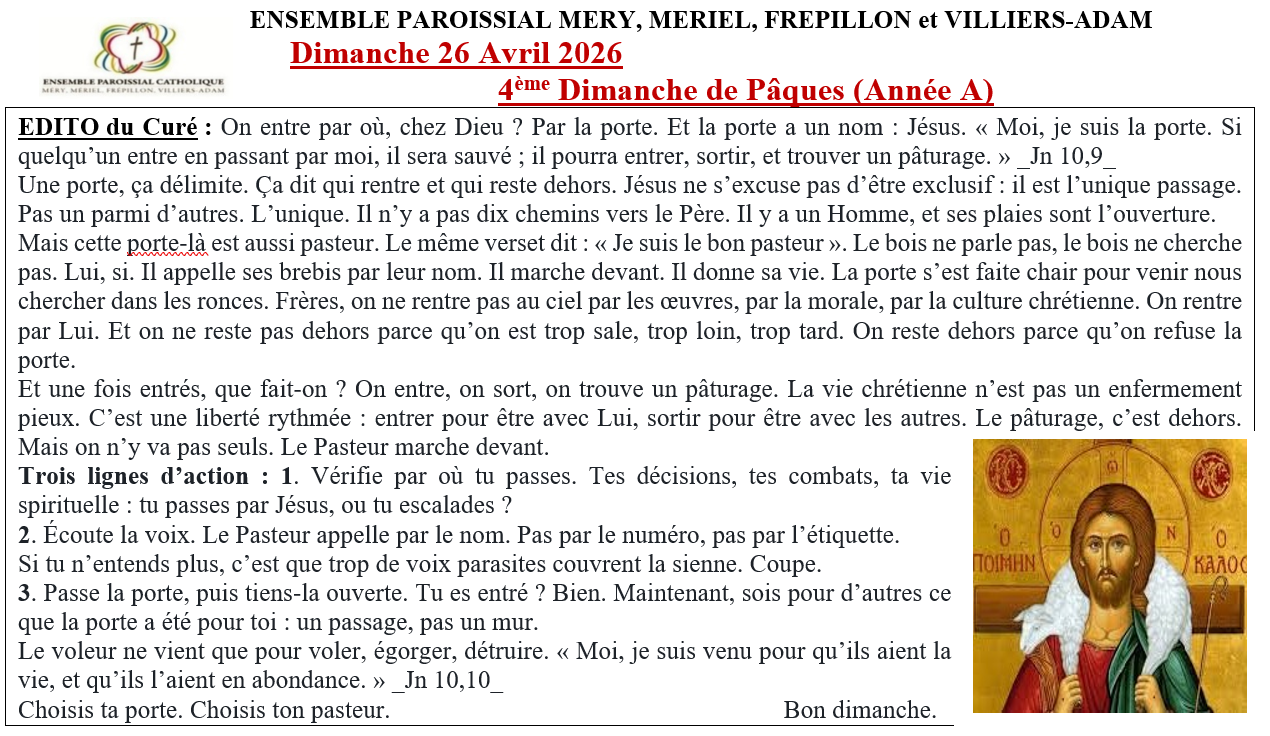 Ensemble paroissial catholique de Méry Sur Oise, Mériel, Frépillon, Villiers-Adam