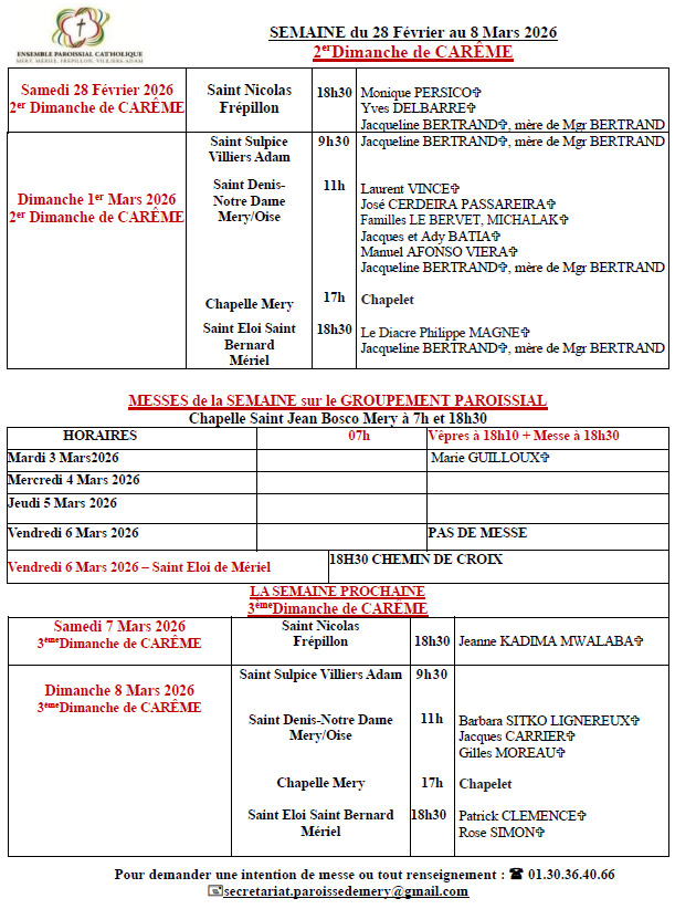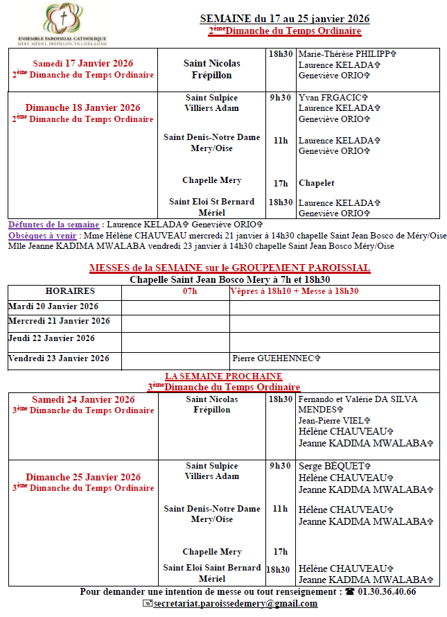 Ensemble paroissial catholique de Méry Sur Oise, Mériel, Frépillon, Villiers-Adam