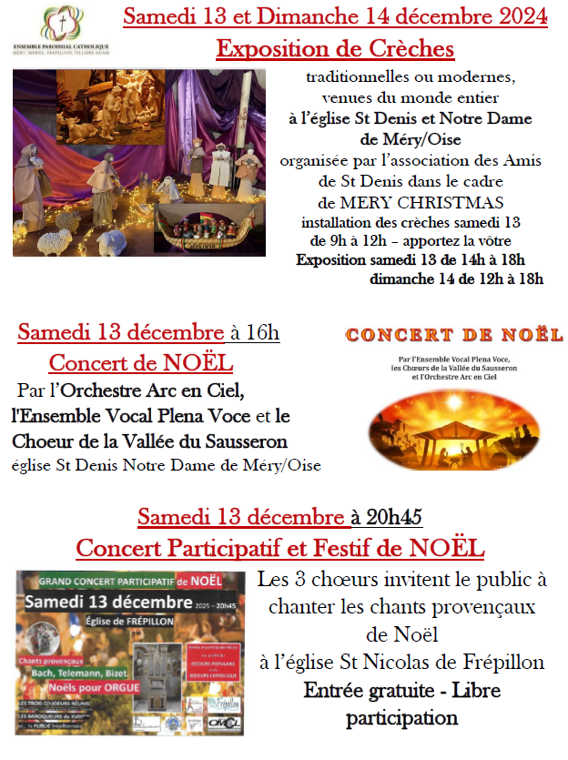 Ensemble paroissial catholique de Méry Sur Oise, Mériel, Frépillon, Villiers-Adam